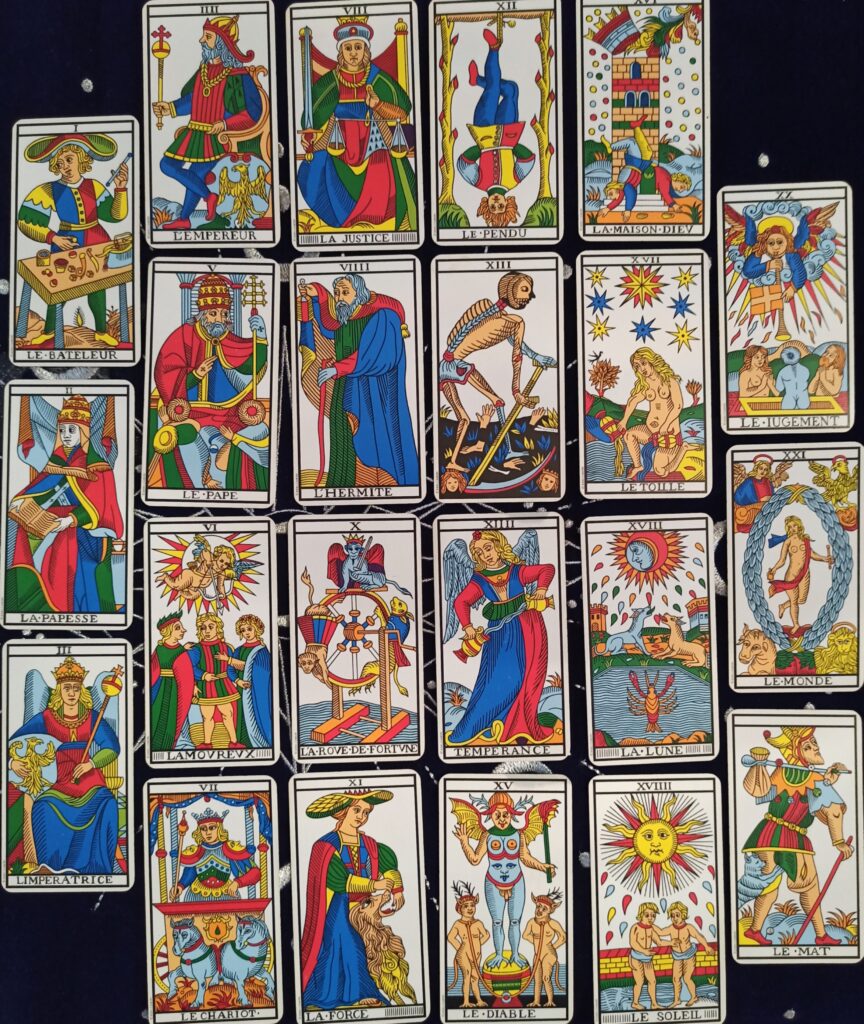 Je vous propose 2 demi journées de découverte du Tarot de Marseille sur 2 mois pour les débutants qui veulent commencer à appréhender les 22 arcanes majeurs et les 4 as.